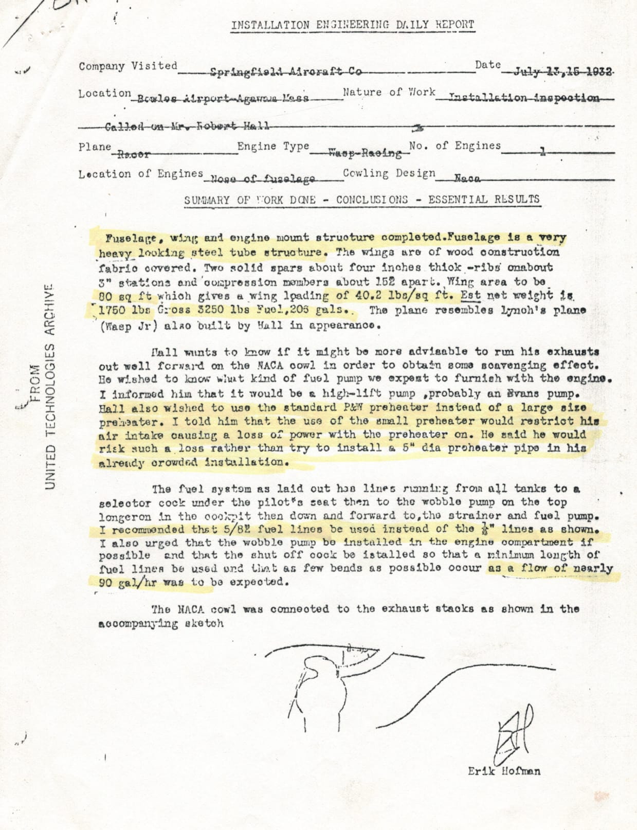 From the July 15, 1932 daily report by P&W engineer Erik Hofman: