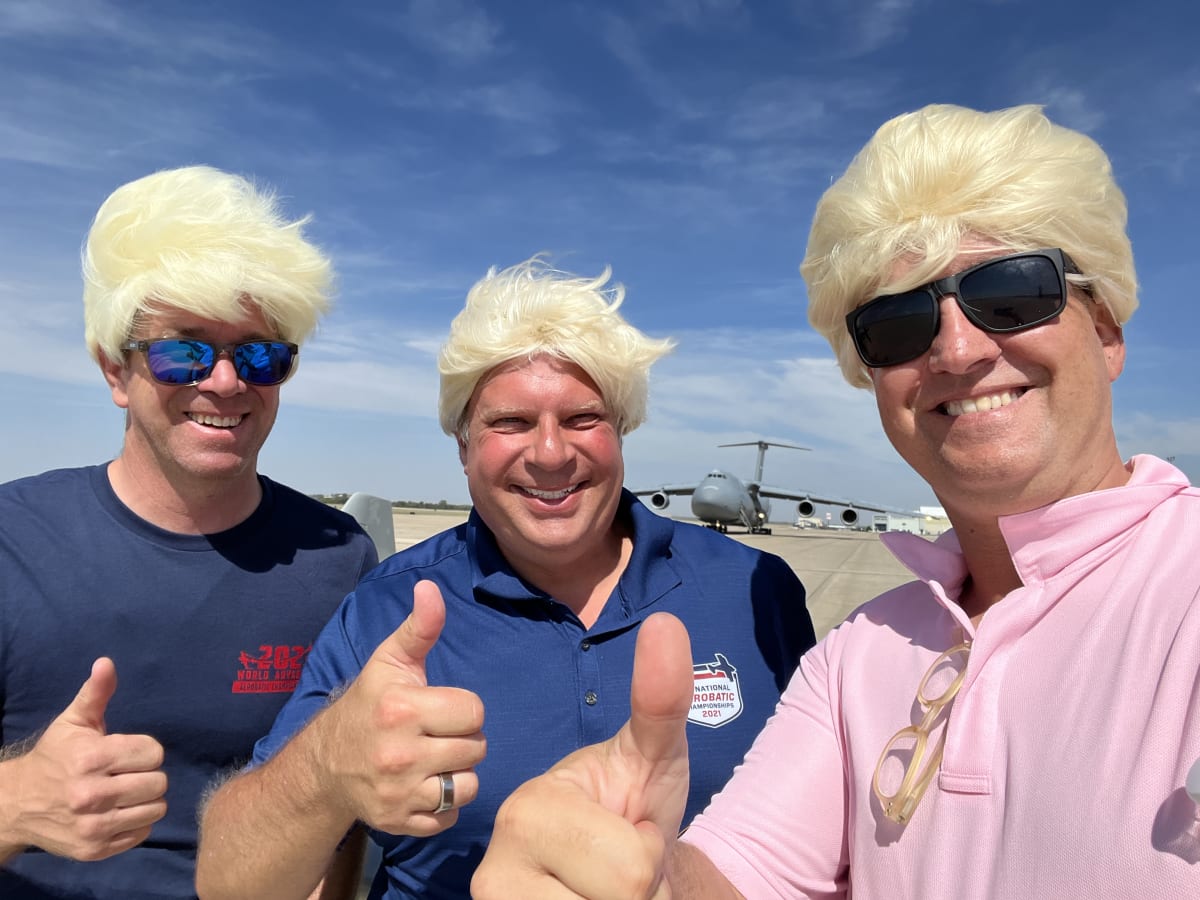 My dad drove up from Oklahoma to watch me compete, bringing along his new dog Sherman. When he walked into the hangar, I had completely forgotten I was still wearing a ridiculous blonde wig. Dad didn’t skip a beat. He just started chatting like everything was perfectly normal.