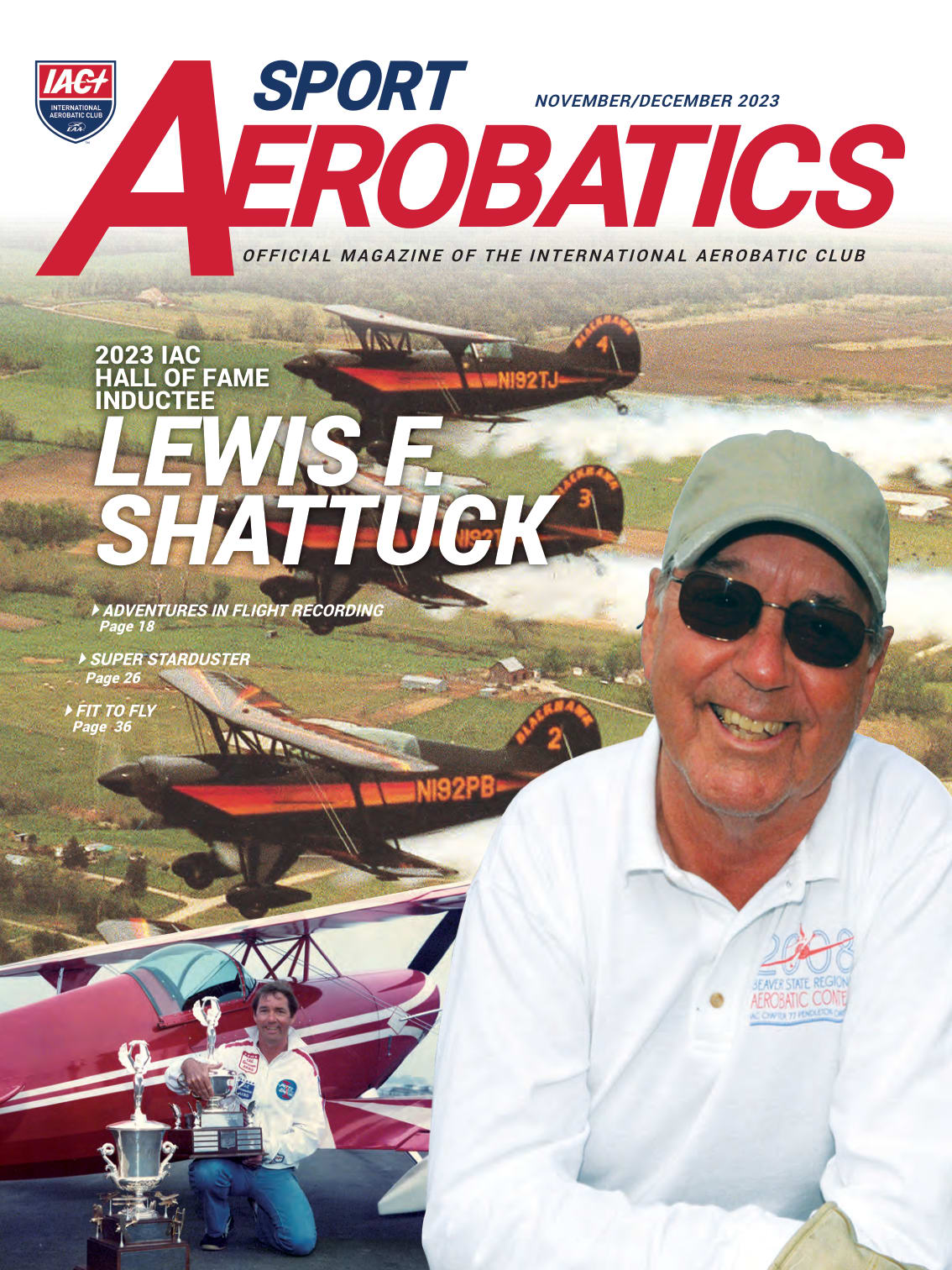 I was very pleased to see that Lew Shattuck was selected by the Hall of Fame committee to be this year’s inductee. I understand we have a feature article on Lew this issue, so I won’t try to add to the list of facts already presented there, but I do want to say that he is certainly eminently deserving of this award. Lew is a fun guy with a wry sense of humor and a tell-it-like-it-is attitude that I really enjoy. I was very fortunate to receive some of my very first aerobatic coaching from Lew at an IAC 77 camp in Ephrata, WA. He has been flying aerobatics for longer than I’ve been alive, and people don’t describe me as particularly young. He is a very capable coach who knows how to inspire confidence while picking apart the things that hold his students back.